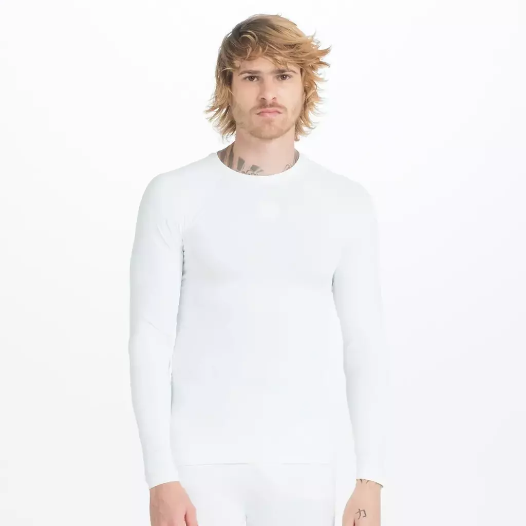 Camisa térmica masculina confeccionada em malha leve de poliamida e elastano, com fio tecnológico que contém proteção solar FPS 50+ dos raios UVA e UVB. Modelagem slim fit, bem ajustada ao corpo, com manga longa raglan e gola careca. Possui costuras flat sem atrito com o corpo e logo Umbro Pro Training em termo centralizado na parte frontal superior.